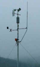 Links das DAVIS-Anemometer mit Eigenbau-Windfahne, oben ein